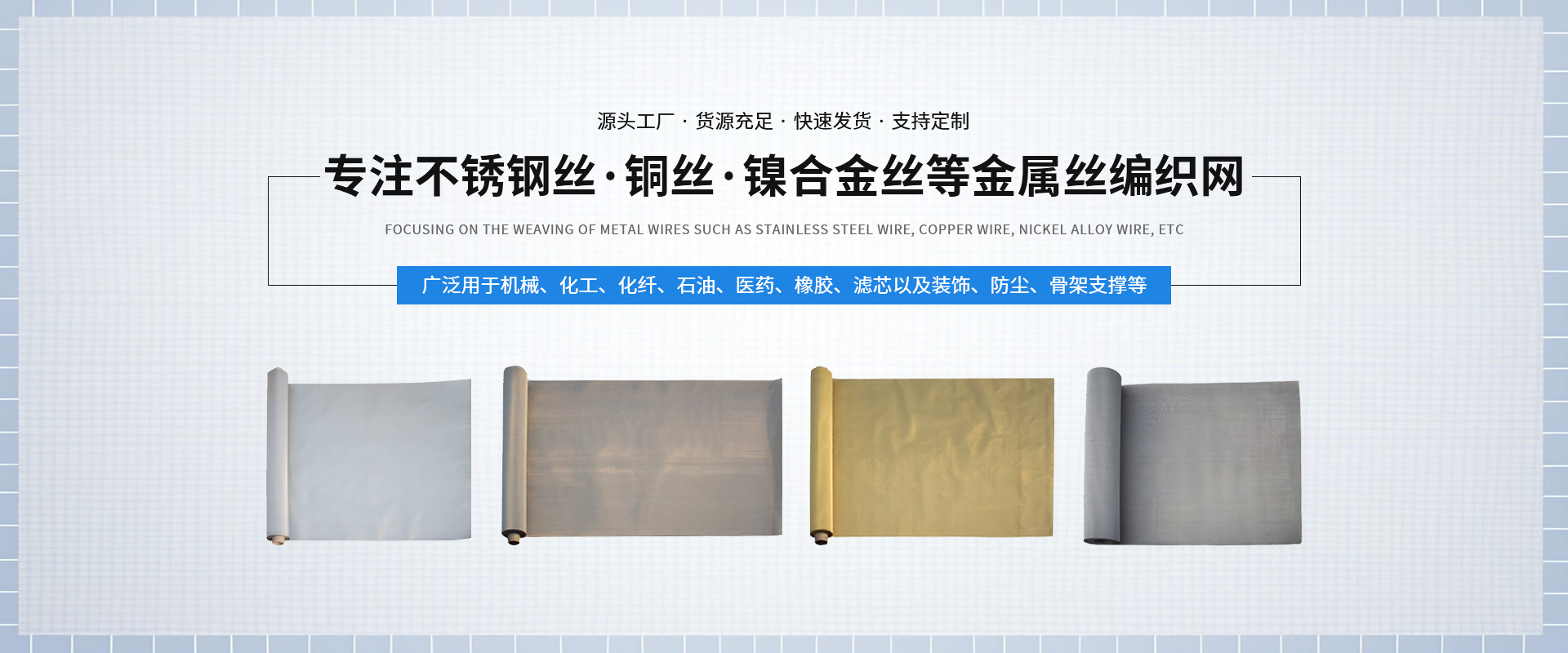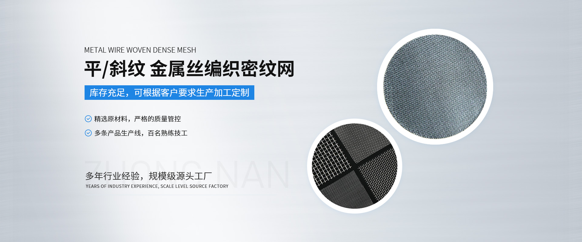 新鄉(xiāng)市中南金屬網(wǎng)有限公司成立于1999 年,公司設(shè)在河南省新鄉(xiāng)市。在過去的十幾年來,我們堅(jiān)持以嚴(yán)格的管理措施、雄厚的技術(shù)力量、良好的工藝設(shè)施,質(zhì)量上乘、信譽(yù)為上為原則,把樹立良好的企業(yè)形象為工作宗旨,歷經(jīng)市場(chǎng)的嚴(yán)峻考驗(yàn)并贏得廣大用戶的一致好評(píng)。金屬絲網(wǎng)編織結(jié)構(gòu)形式有平紋和斜紋兩種方法,嚴(yán)格按照航空軍品標(biāo)準(zhǔn)HB1862—93和標(biāo)準(zhǔn)GB/T5330—2003標(biāo)準(zhǔn),并等效采用國際標(biāo)準(zhǔn)ISO9044—90標(biāo)準(zhǔn)組織生產(chǎn)?! 」緭碛猩a(chǎn)設(shè)備和技術(shù)人員,主要生產(chǎn)不銹鋼篩網(wǎng)、磨料網(wǎng)、金屬絲編織方孔網(wǎng)、篩網(wǎng)、濾網(wǎng) 、篩分網(wǎng) 、過濾網(wǎng)、不銹鋼網(wǎng)、絲網(wǎng)、金屬絲網(wǎng)、金屬絲編織密紋網(wǎng)、特種網(wǎng)、不銹鋼密紋網(wǎng)、荷蘭網(wǎng)、席型網(wǎng)。絲網(wǎng)材質(zhì)選用黃銅、錫青銅、不銹鋼、純鎳等。席型網(wǎng)規(guī)格7/44目—500/3500目,方孔網(wǎng)規(guī)格1/2目—500目,網(wǎng)孔25mm—0.028mm,產(chǎn)品廣泛用于機(jī)械、化工、化纖、石油、醫(yī)藥、橡膠、濾芯、固體果粒篩分、流體過濾以及裝飾、防塵、骨架支撐等?! ∥覀円浴耙曎|(zhì)量為生命、以信譽(yù)求生存、以科技促發(fā)展、以優(yōu)*產(chǎn)品為客戶服務(wù)”的經(jīng)營理念,真誠的希望與各界人士攜手并進(jìn),共創(chuàng)輝煌!